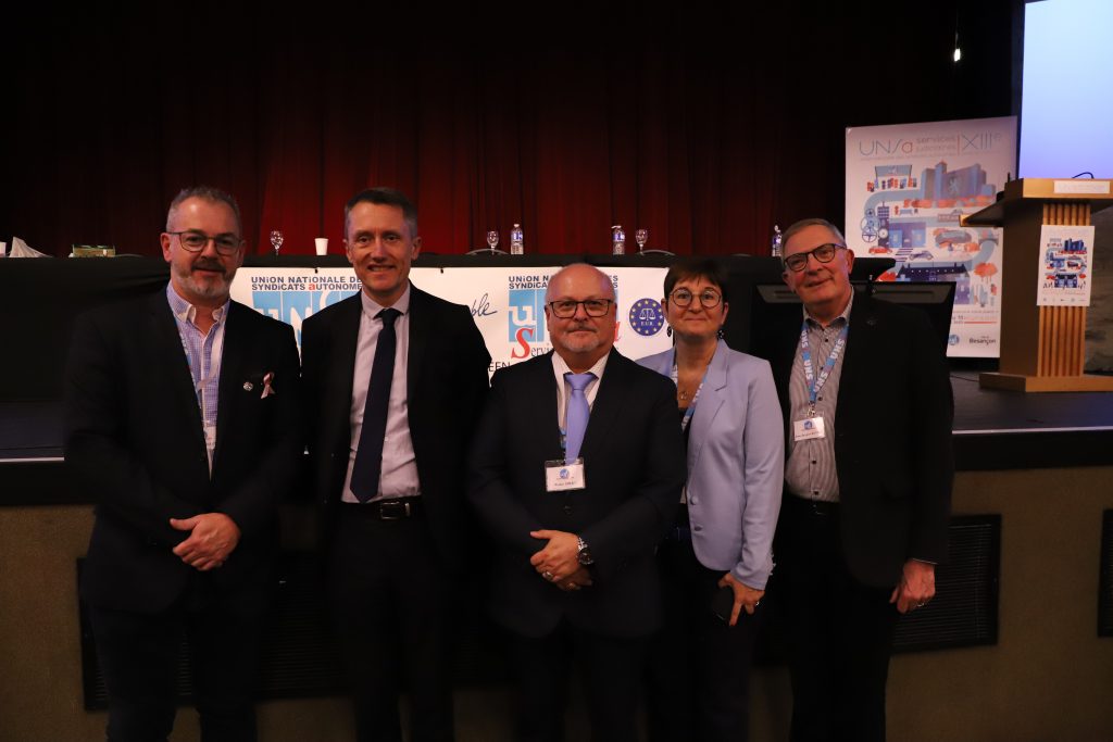 Sur invitation de l’UNSa Services Judiciaires, Walter Szöky a assisté au congrès à Besançon les 16 et 17 octobre 2025. Après des remarques de bienvenue et une présentation de l’Union européenne des greffiers (EUR) et de ses projets, il a rencontré le directeur des services judiciaires du ministère français de la justice. Walter Szöky