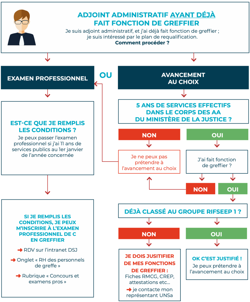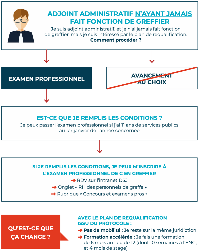 Un plan de requalification de 700 adjoints « Faisant- Fonction » deviendront greffiers sur place.