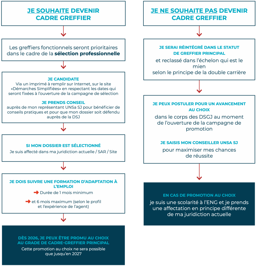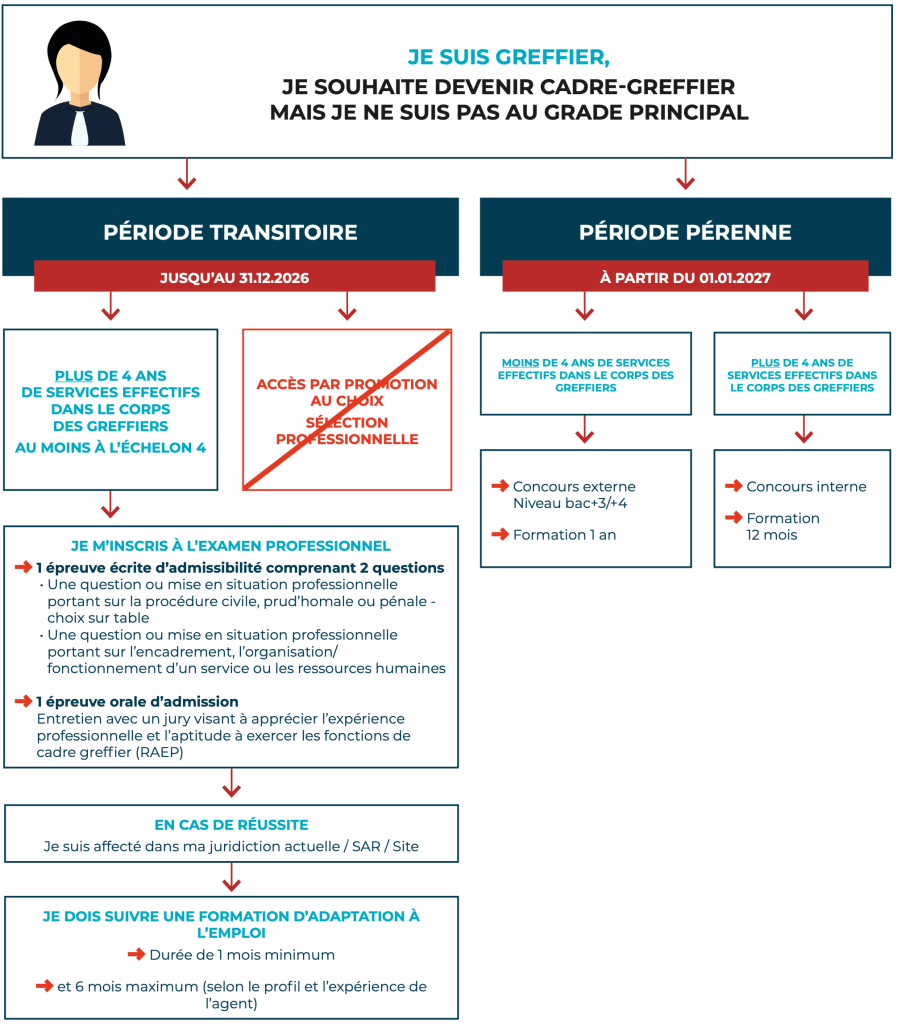 À compter de 2025 et pendant 3 ans, le nombre de promotions de greffiers au grade principal sera en forte hausse en raison du passage des greffiers principaux dans le corps de cadre-greffier.