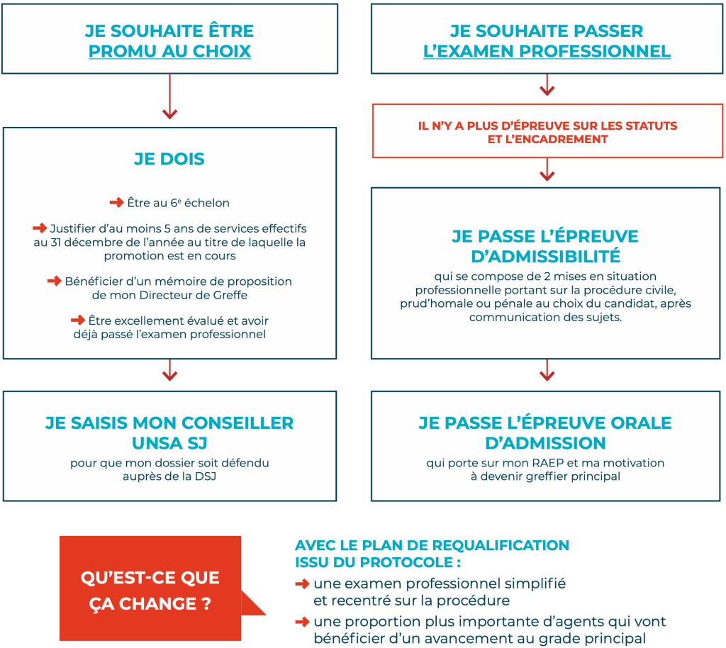 Il y aura donc davantage d’agents promus au choix, et davantage de places à pourvoir au titre de l’examen professionnel, lequel est modifié pour être recentré sur les épreuves de procédure.